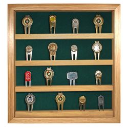 Handcrafted right here in the USA, this handsome divot repair tool display case will be the perfect home for your prized collection. Whether showing off your golf journey, tournament schedule, or favorite teams, this solid hardwood box will be the center of attention in any golf lover's favorite room. With an optional 98% UV blocking acrylic cover, and personalized engraved brass plate, your collection will be protected from harmful sunlight, dust and curious onlookers alike. Available in cherry, walnut, black, and oak finishes.