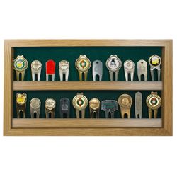 Handcrafted right here in the USA, this handsome divot repair tool display case will be the perfect home for your prized collection. Whether showing off your golf journey, tournament schedule, or favorite teams, this solid hardwood box will be the center of attention in any golf lover's favorite room. With an optional personalized engraved brass plate, your collection will get the special treatment it deserves. Available in cherry, walnut, black, and oak finishes.